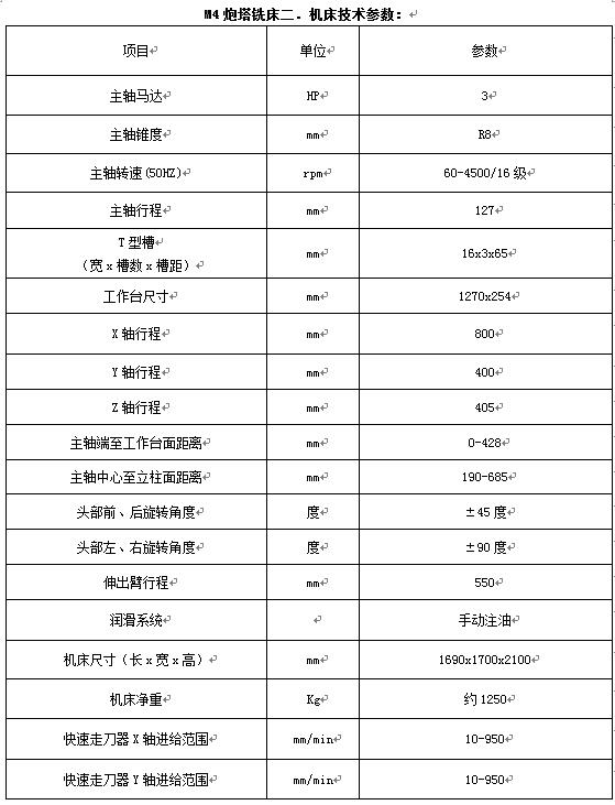 機床的技術(shù)規(guī)格: